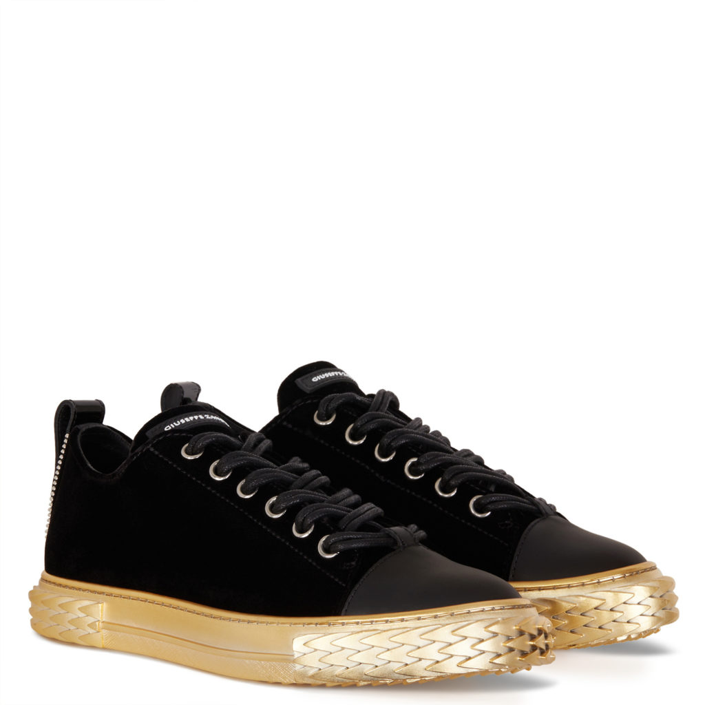 These low-top, black velvet sneakers feature the Signature label and a black leather toecap. They are set on a golden 'Blabber' rubber sole with logo.