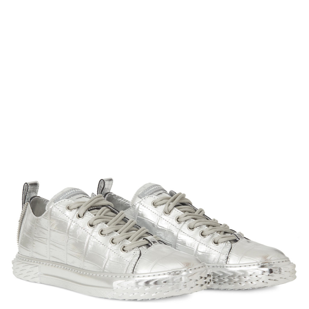 These low-top, silver crocodile print leather sneakers feature the Signature label. The design is set on a silver 'Blabber' rubber sole with logo.