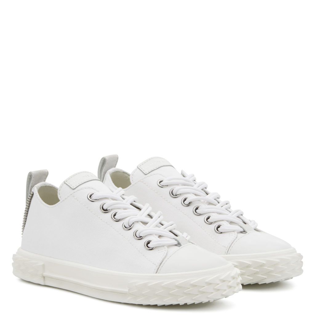 These low-top, white canvas sneakers are characterized by a white leather toe cap. The design is completed by the Signature label, and is set on a rubber sole with logo.