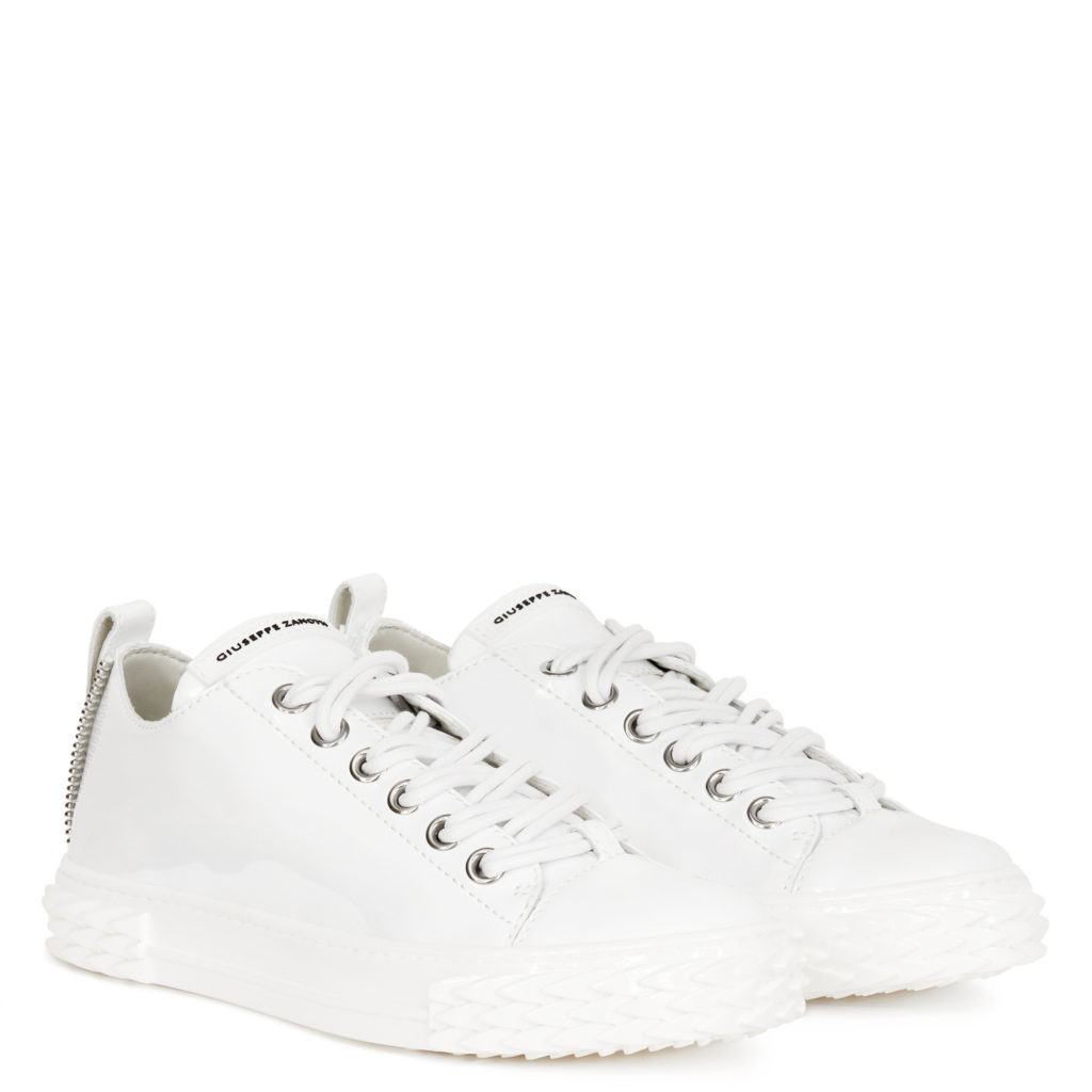 These low-top white patent leather sneakers feature the Signature label and a tab on the back. They are set on a 'Blabber' rubber sole in matching colour, with logo.