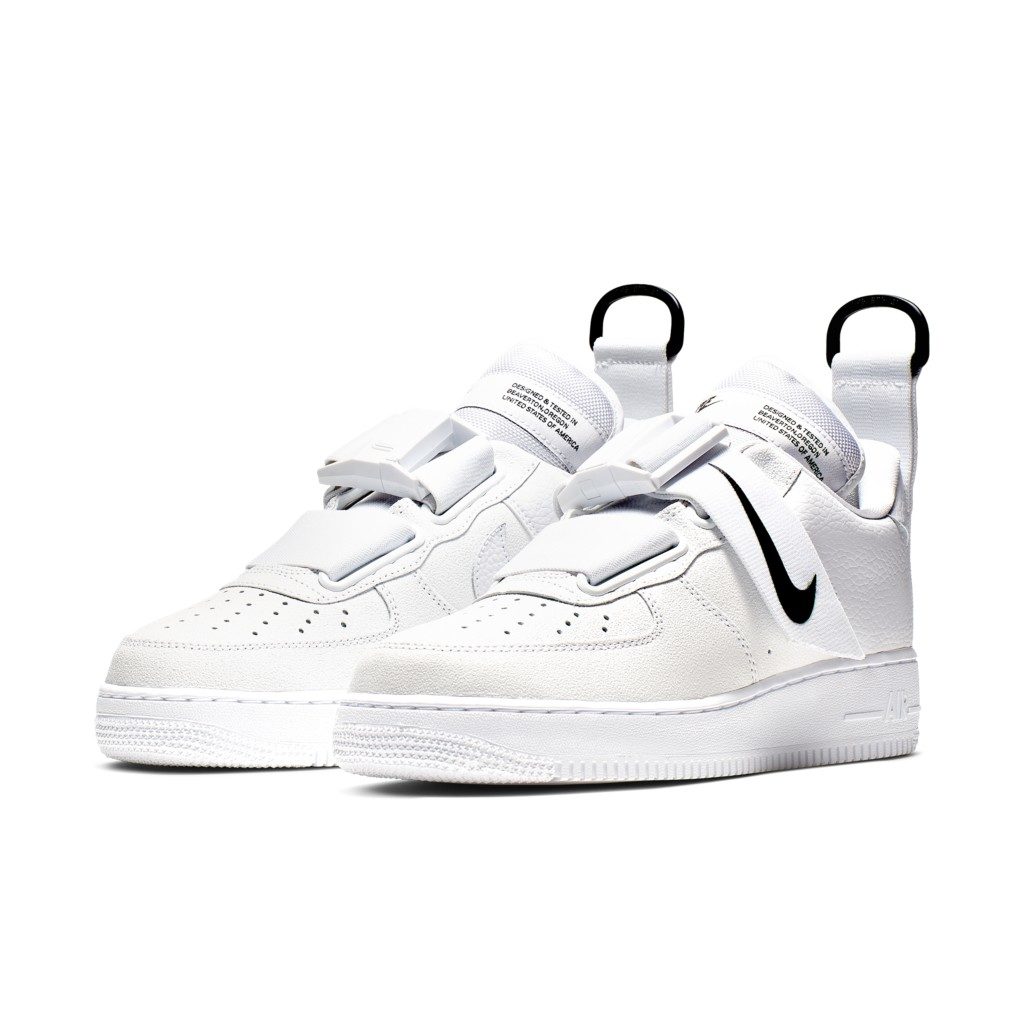 Nike bring us the classic Air Force 1 Low silhouette that’s been given a utility redesign with the release of the ‘Air Force 1 Utility White’ which originally released in March 2019. The sneaker has an upper which is crafted from white leather with various textures. The traditional lacing system on the original AF1 is replaced with two large white straps paired with a longer tongue to secure your foot in place. Nike signature "Swoosh" branding is found on the medial side of the sneaker as well as on the straps and tongue. Additional details include an industrial-looking heel tab that rises far above the heel collar and is paired with a black metal D-ring. The look is completed by the midsole and outsole which sit underfoot and house the Air cushioning technology. If you’re looking for something simple yet unique on the AF1 classic silhouette, grab these at Solezilla today!