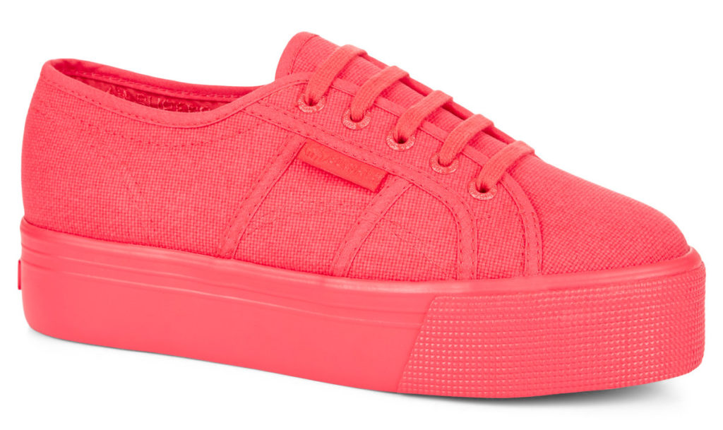 Our favourite Flatform in NEON! Be on trend this season in our 2790 Neon Flatform available in 3 colours! The 2790 flatform is a cross between our classic tennis shoe shape, and a platform shoe, featuring a chunky vulcanised rubber sole for extra height. Premium canvas upper Cotton lining Chunky vulcanised 4cm rubber sole Superga tab on side Superga embossed eyelets PLEASE NOTE – In our Flatforms, we strongly advise going down a whole size from the size you normally take.